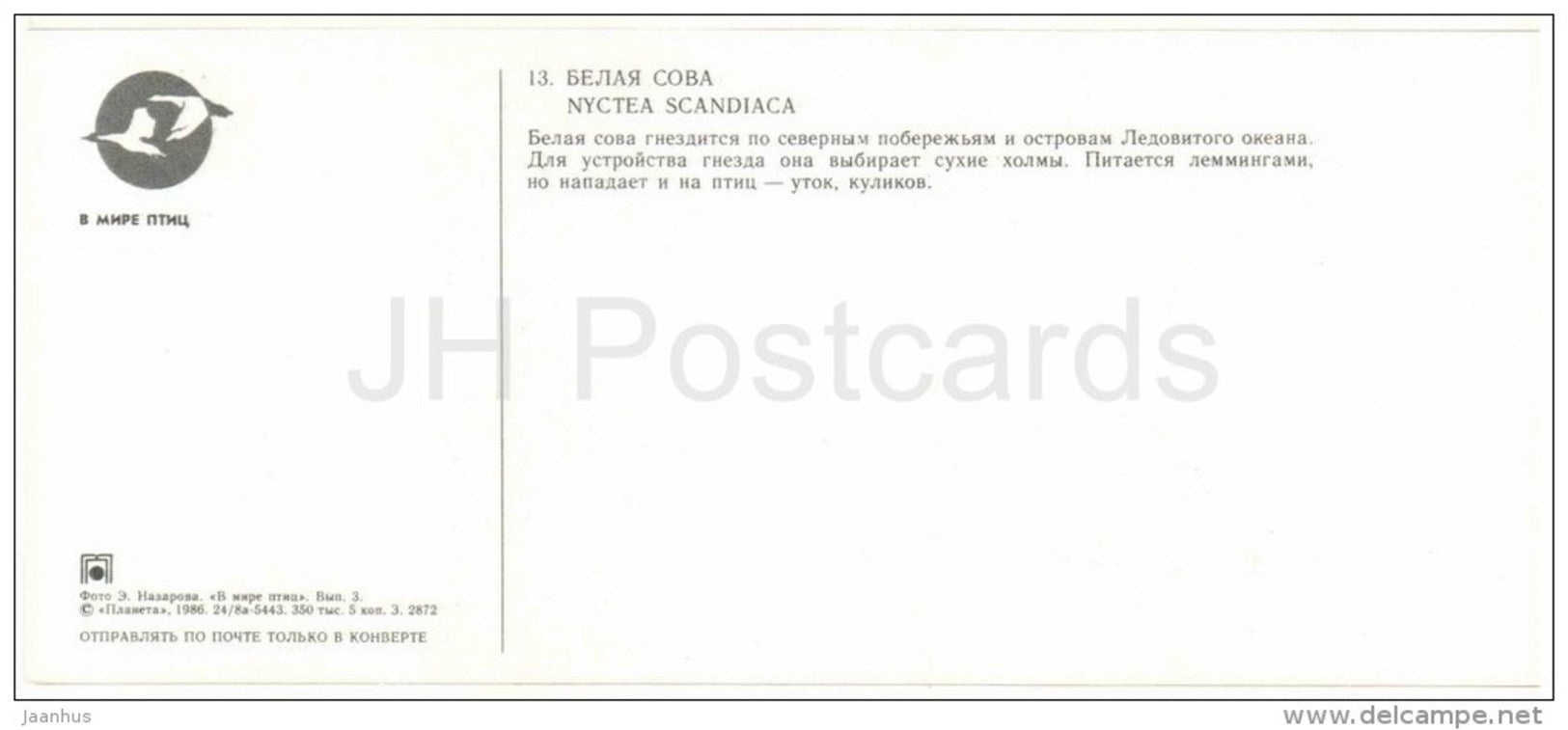 Snowy owl , Nyctea scandiaca - birds - 1986 - Russia USSR - unused