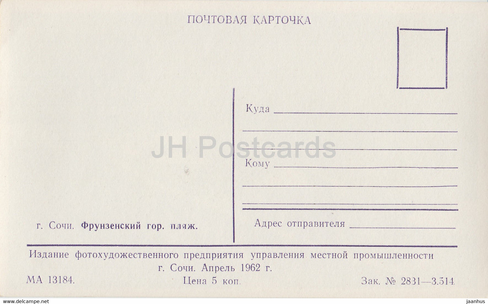 Sochi - Frunze City Beach - 1962 - Russia USSR - unused