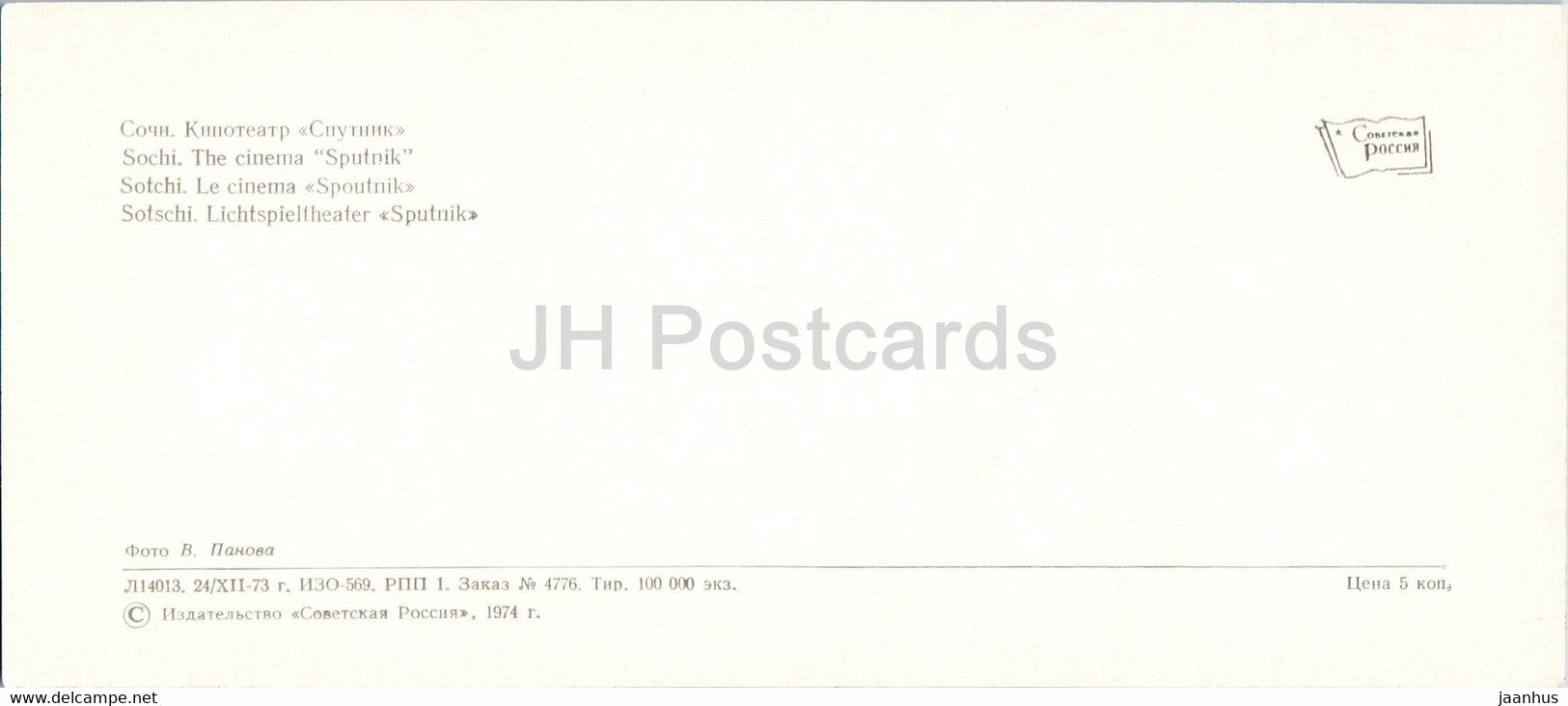 Sochi - The cinema Sputnik - 1974 - Russia USSR - unused