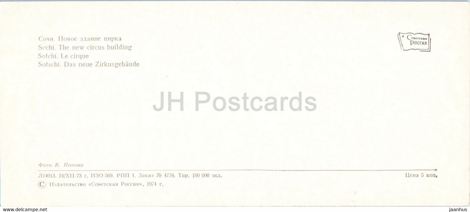 Sochi - The new circus building - 1974 - Russia USSR - unused