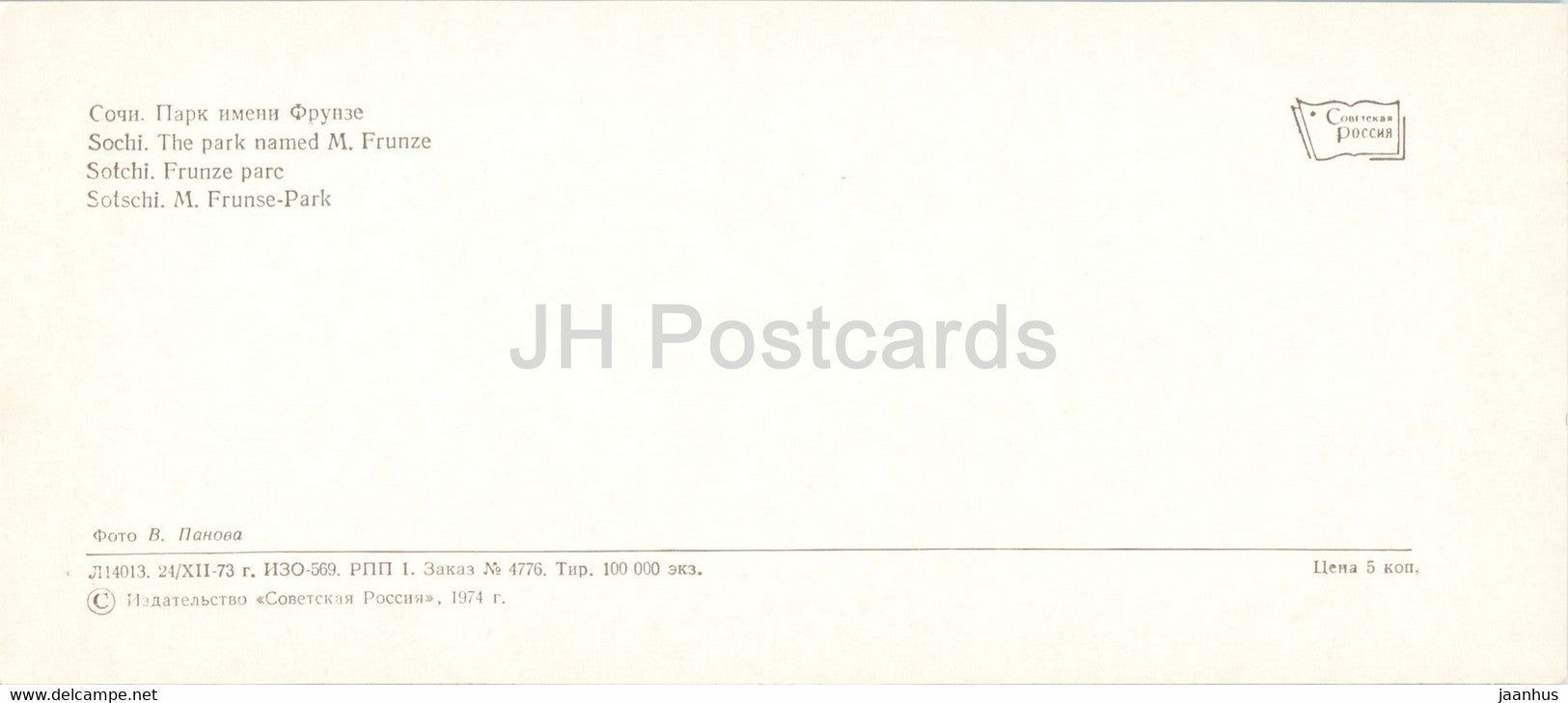 Sochi - The Park named M. Frunze - 1974 - Russia USSR - unused