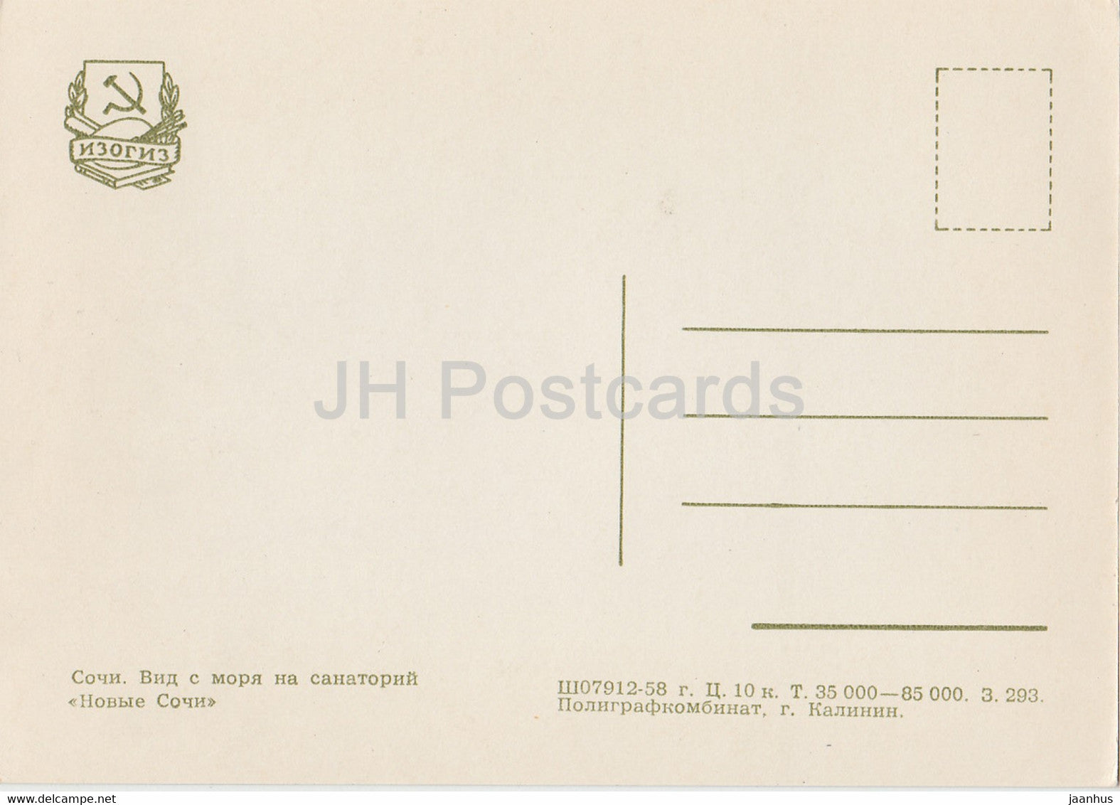 Sochi - view from the sea to the sanatorium Novye Sochi (New Sochi) - motor boat - 1958 - Russia USSR - unused