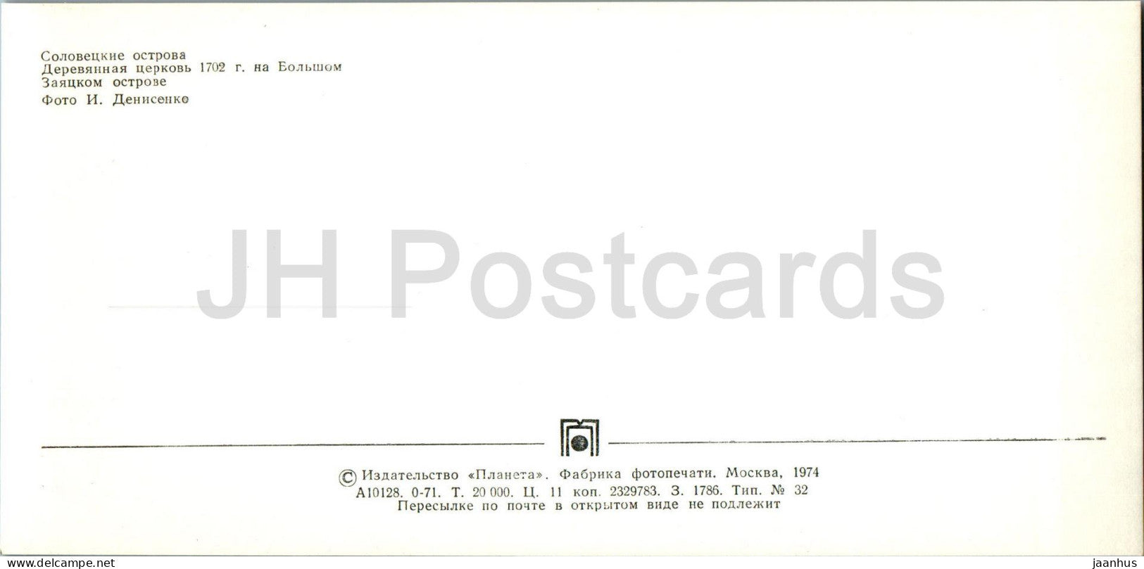 Solovetsky Islands - wooden church on Zayatsky island - 1974 - Russia USSR - unused