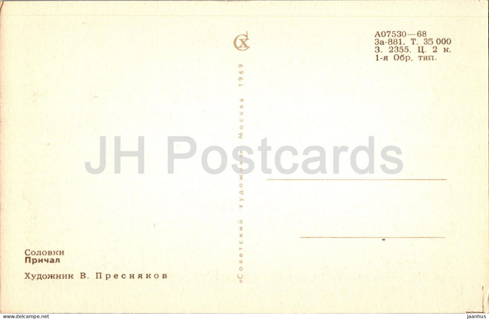 Solovki - dock - ship - boat - graphics by V. Presnyakov - 1969 - Russia USSR - unused