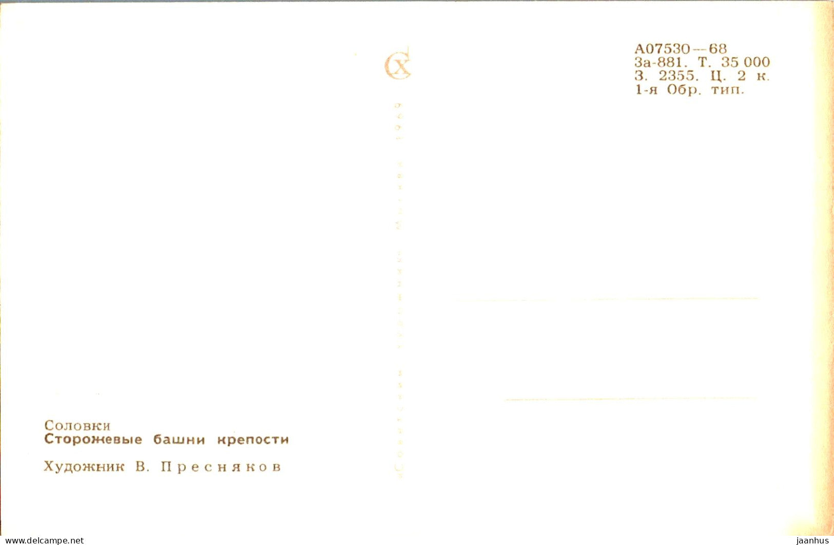 Solovki - fortress watchtowers - graphics by V. Presnyakov - 1969 - Russia USSR - unused