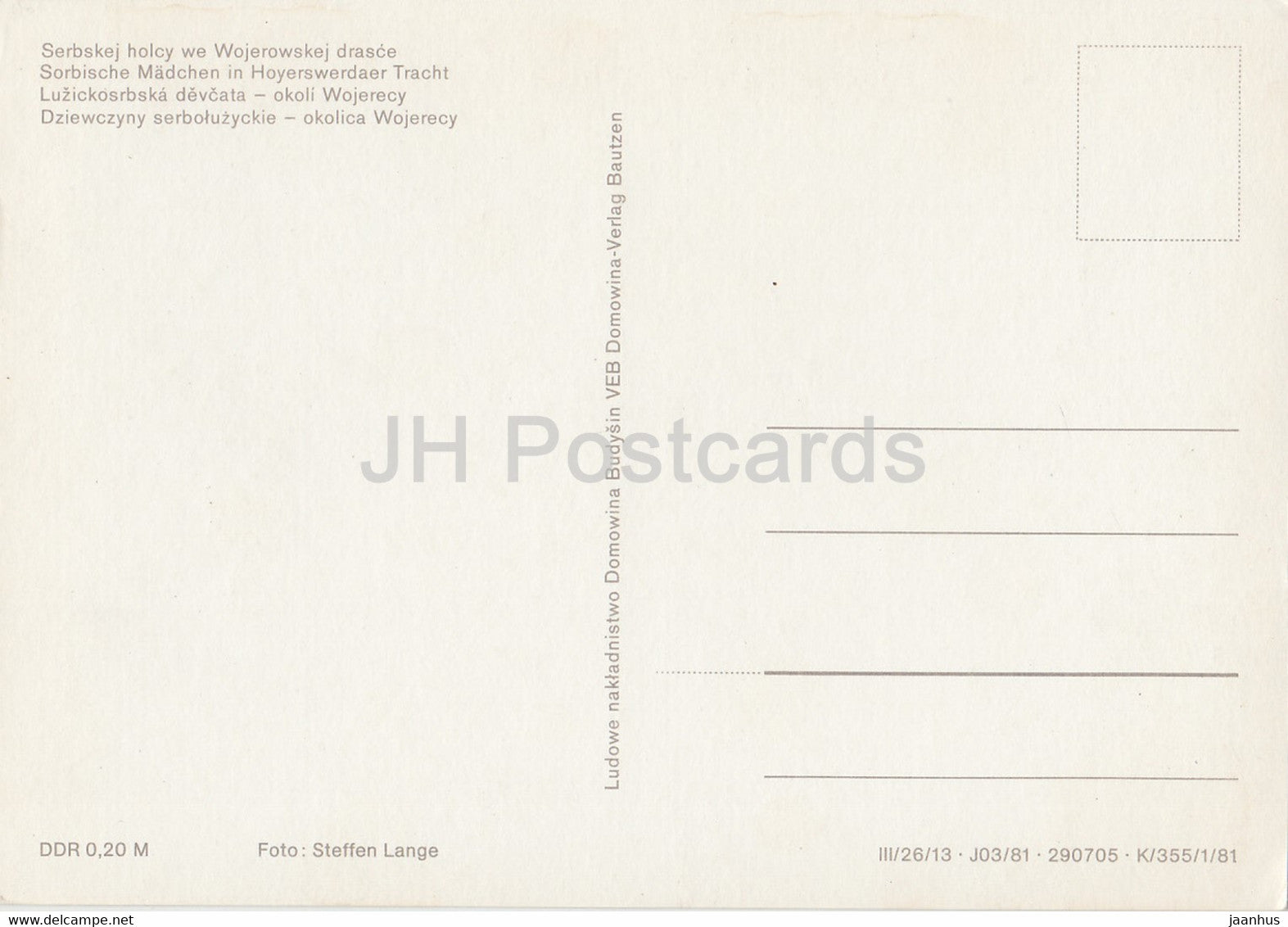 Sorbische Madchen in Hoyerswerdaer Trach - folk costumes - Germany DDR - unused