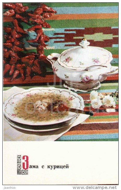 Soup with chicken - dishes - Moldova - Moldavian cuisine - 1974 - Russia USSR - unused