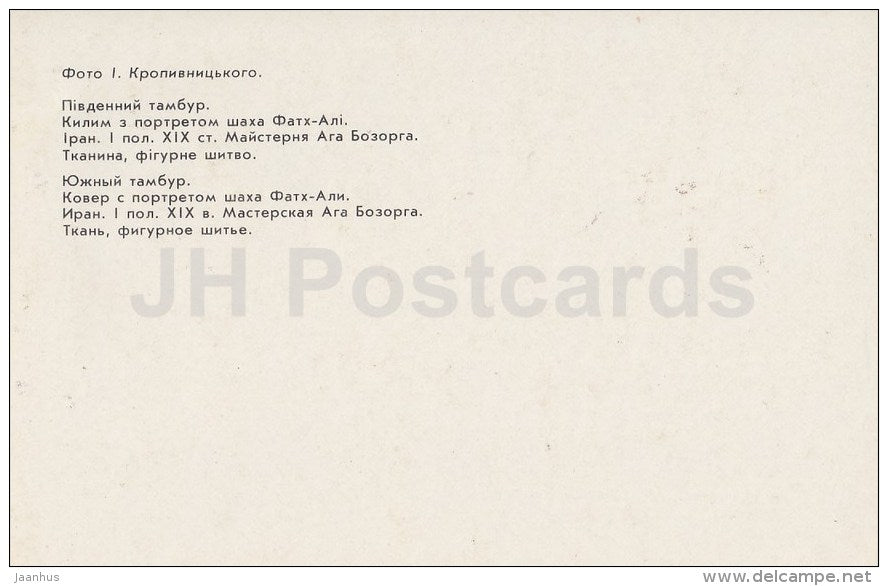 South vestibule . Carpet with a portrait of Fatkh-Ali - Alupka Palace Museum - Crimea - 1989 - Ukraine USSR - unused