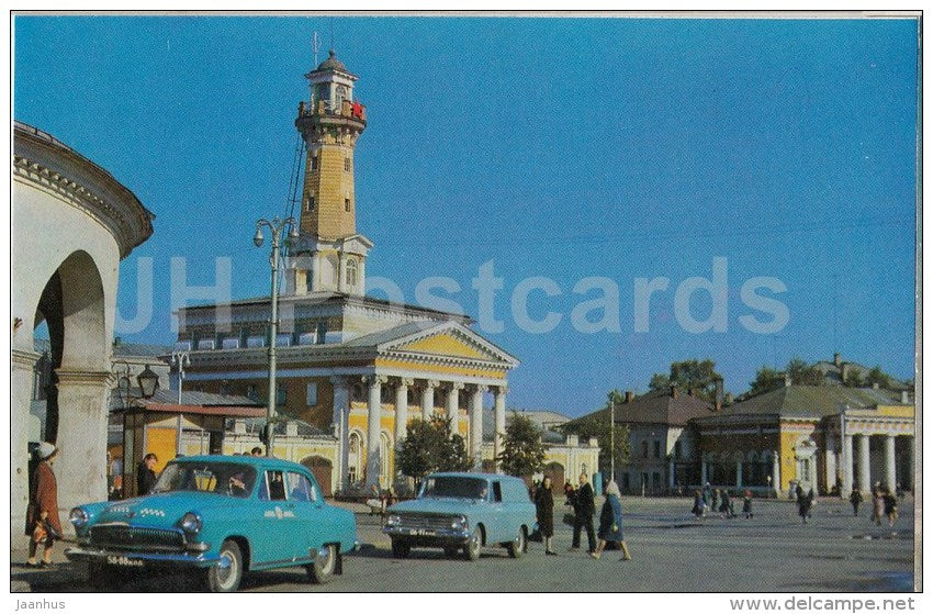 Soviet Square - car Volga taxi - Moskvitch - Kostroma - 1972 - Russia USSR - unused