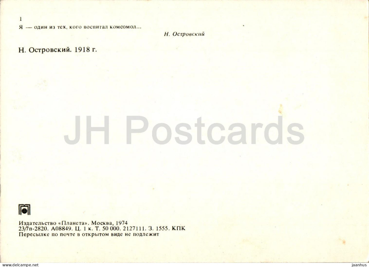 Soviet writer Nikolai Ostrovsky museum - photo - 1918 - 1974 - Russia USSR - unused