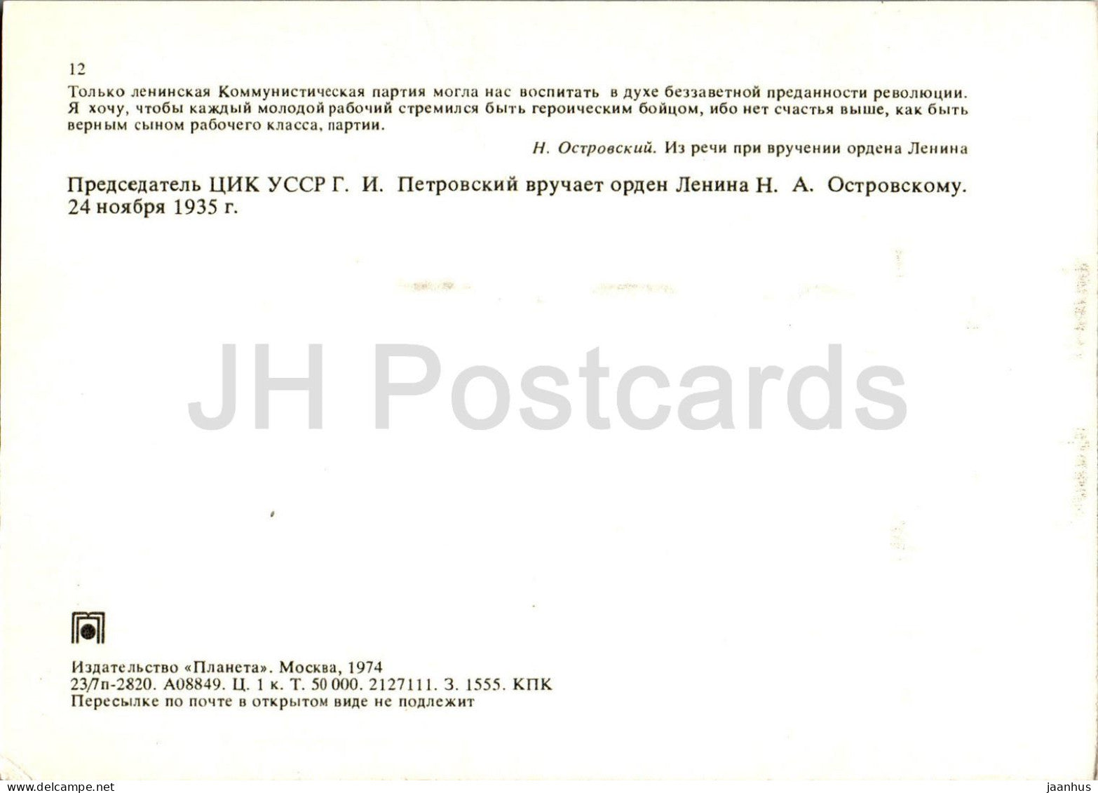 Soviet writer Nikolai Ostrovsky museum - presentation of the Order of Lenin - 1974 - Russia USSR - unused