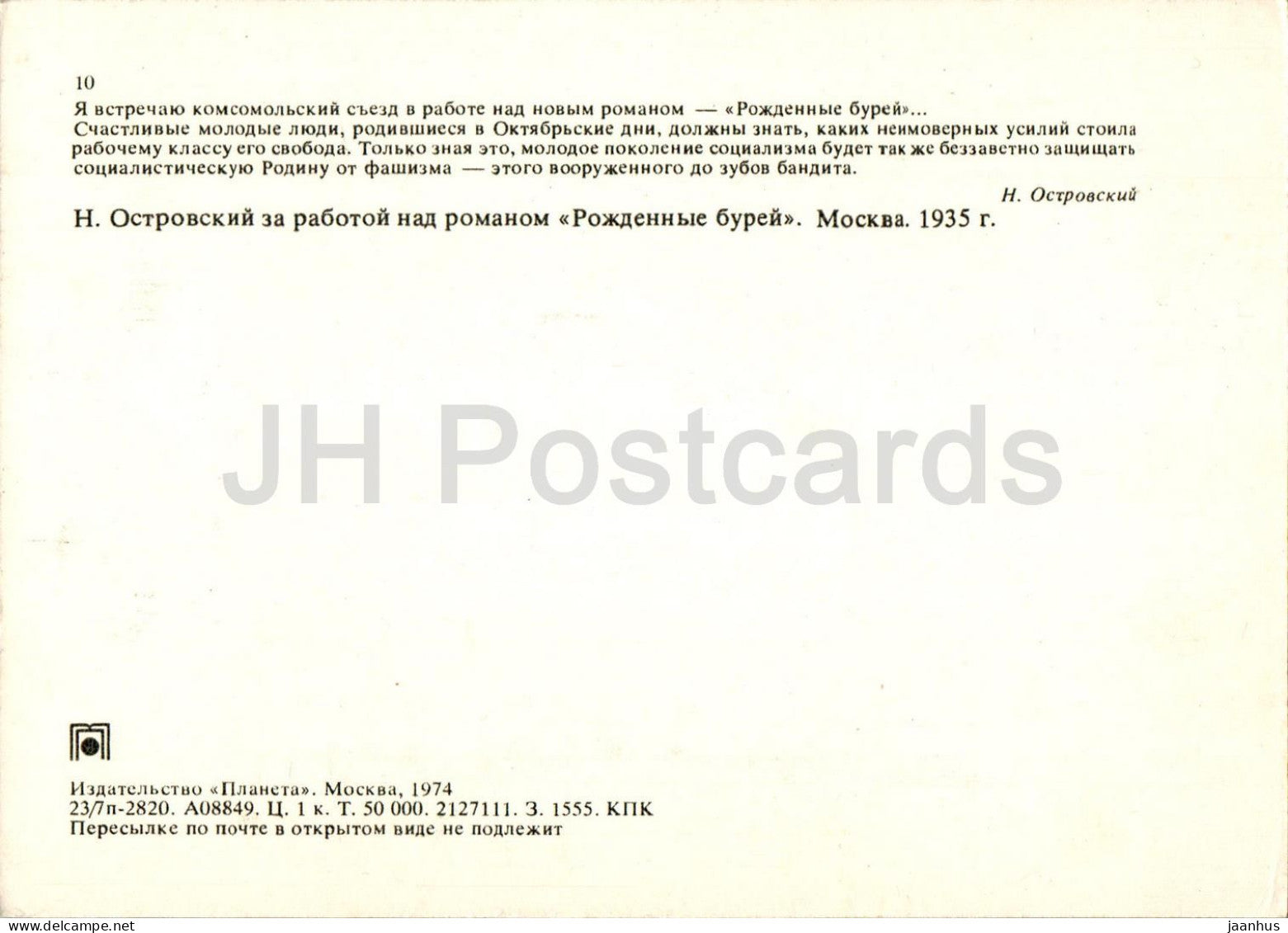 Soviet writer Nikolai Ostrovsky museum - working on a novel Born of the Storm - 1974 - Russia USSR - unused