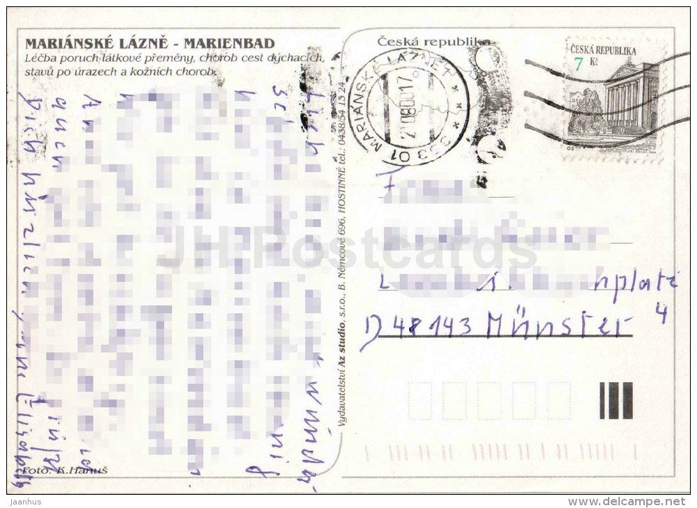 spa - villa Butterfly - colonnade - Goethe monument - geological park - Mariansle Lazne - Marienbad - Czech - used 2000