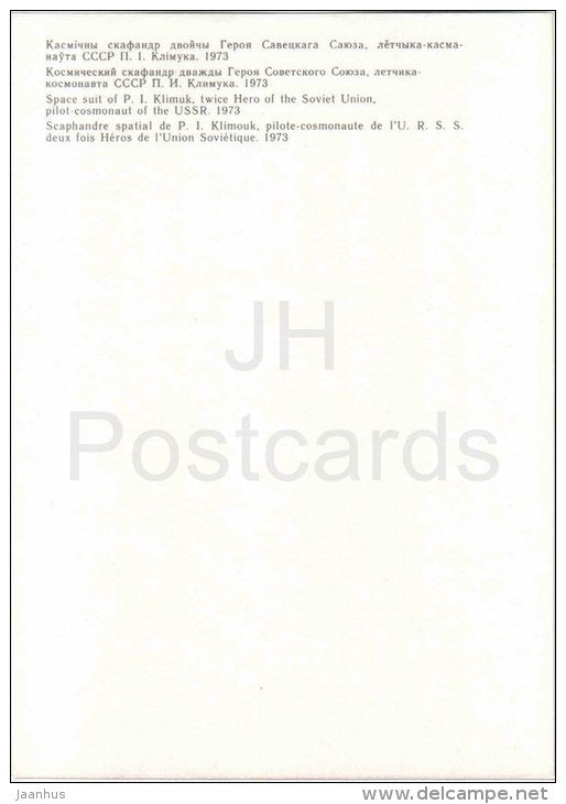 Space Suit of Cosmonaut P. Klimuk - Belarus State Museum - 1986 - Belarus USSR - unused