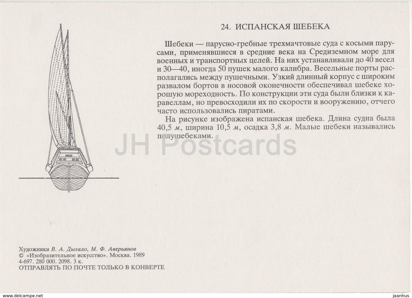 Spanish Xebec - sailing ship - illustration - 1989 - Russia USSR - unused