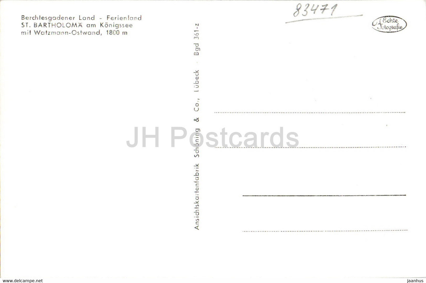 St Bartholoma am Konigssee mit Watzmann Ostwand 1800 m - old postcard - Germany - unused