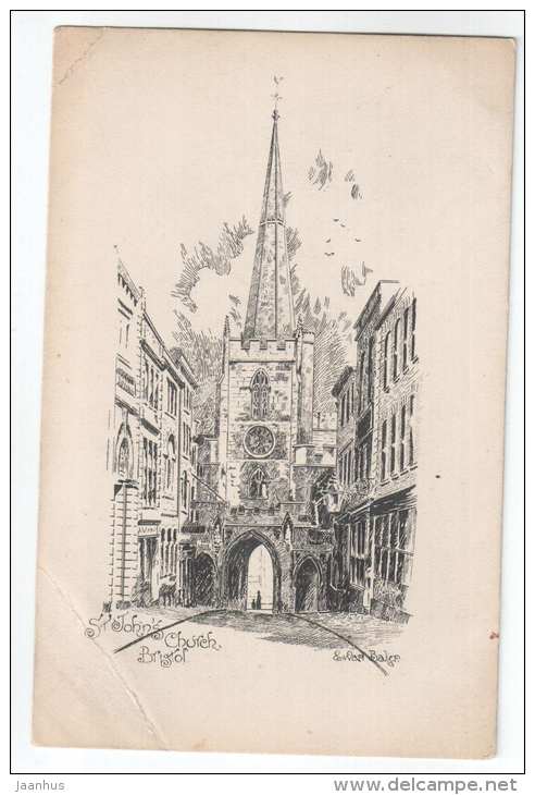 St. John`s Church by Ewart Baker - Bristol - England - UK - old postcard - unused