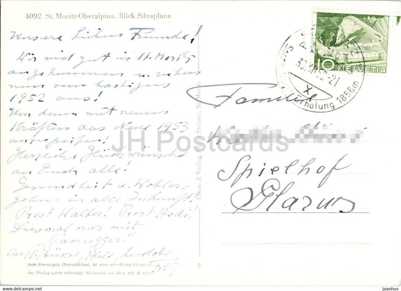 St Moritz Oberalpina - Blick Silvaplana - 4092 - old postcard - 1952 - Switzerland - used
