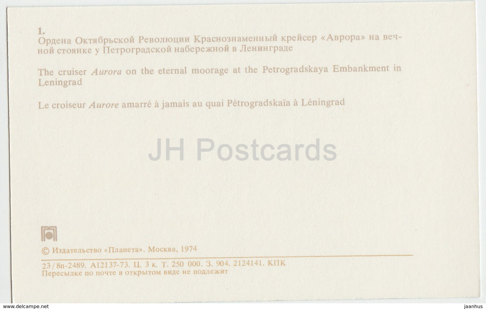 St Petersburg - Leningrad - Petrogradskaya Embankment - cruiser Aurora - warship - 1974 - Russia USSR - unused