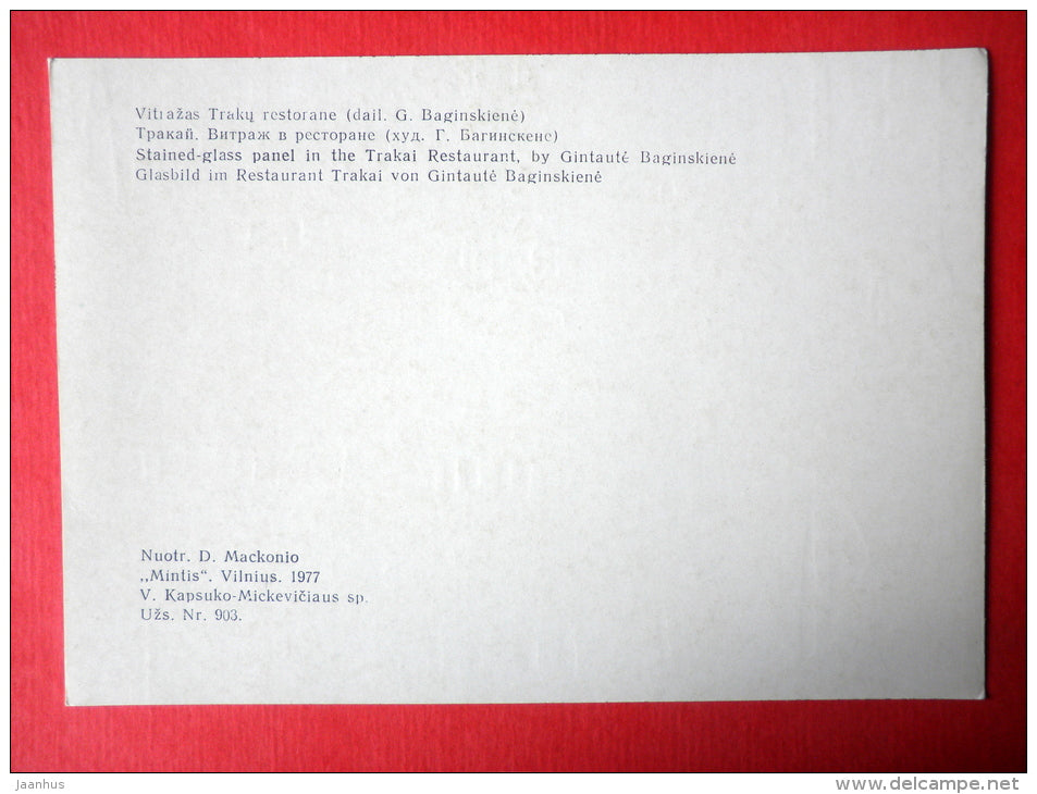 stained-glass panel in the Trakai restaurant - Trakai - 1977 - Lithuania USSR - unused