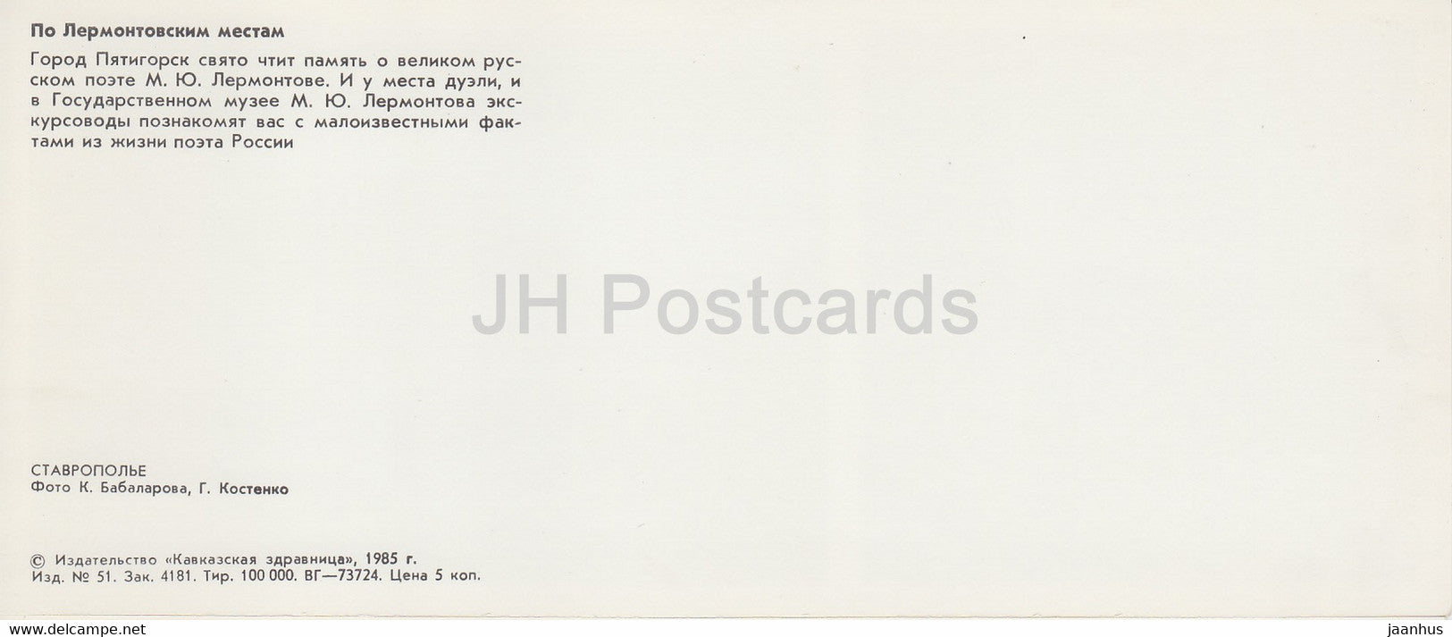 Stavropol area - Stavropolye - Lermontov Places - Pyatigorsk - 1985 - Russia USSR - unused