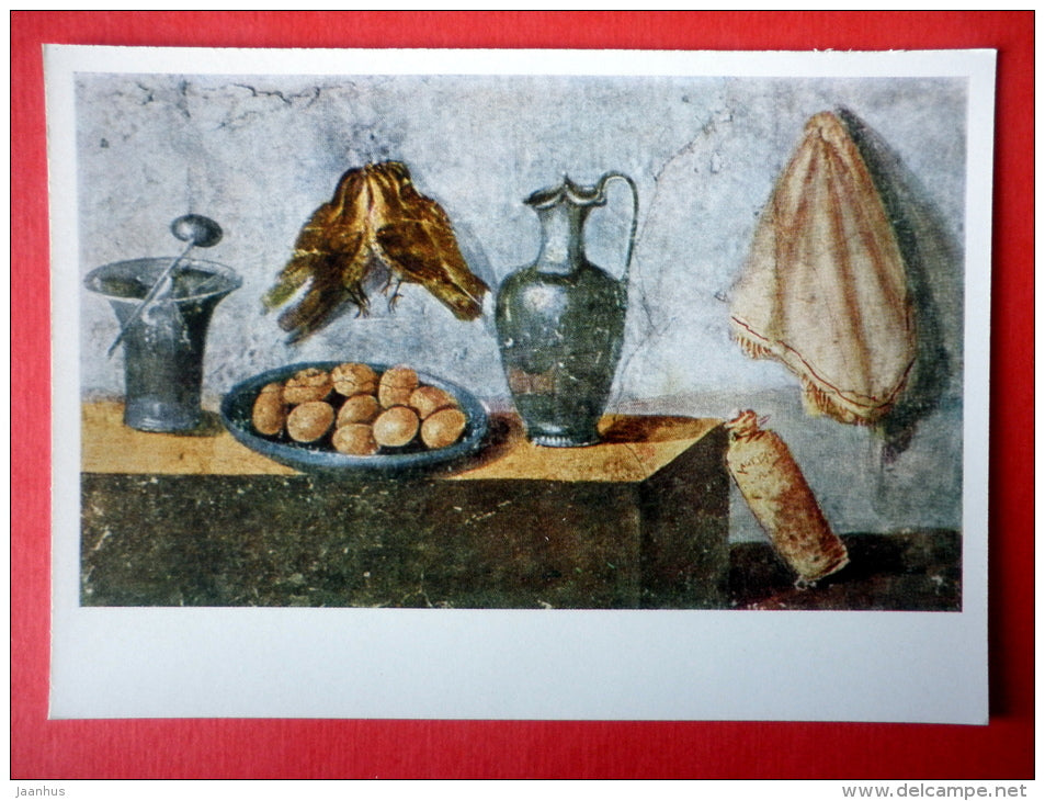 Still Life with Jar , I century AD - birds - Pompeii Frescoes - Ancient Rome Art - 1967 - USSR Russia - unused