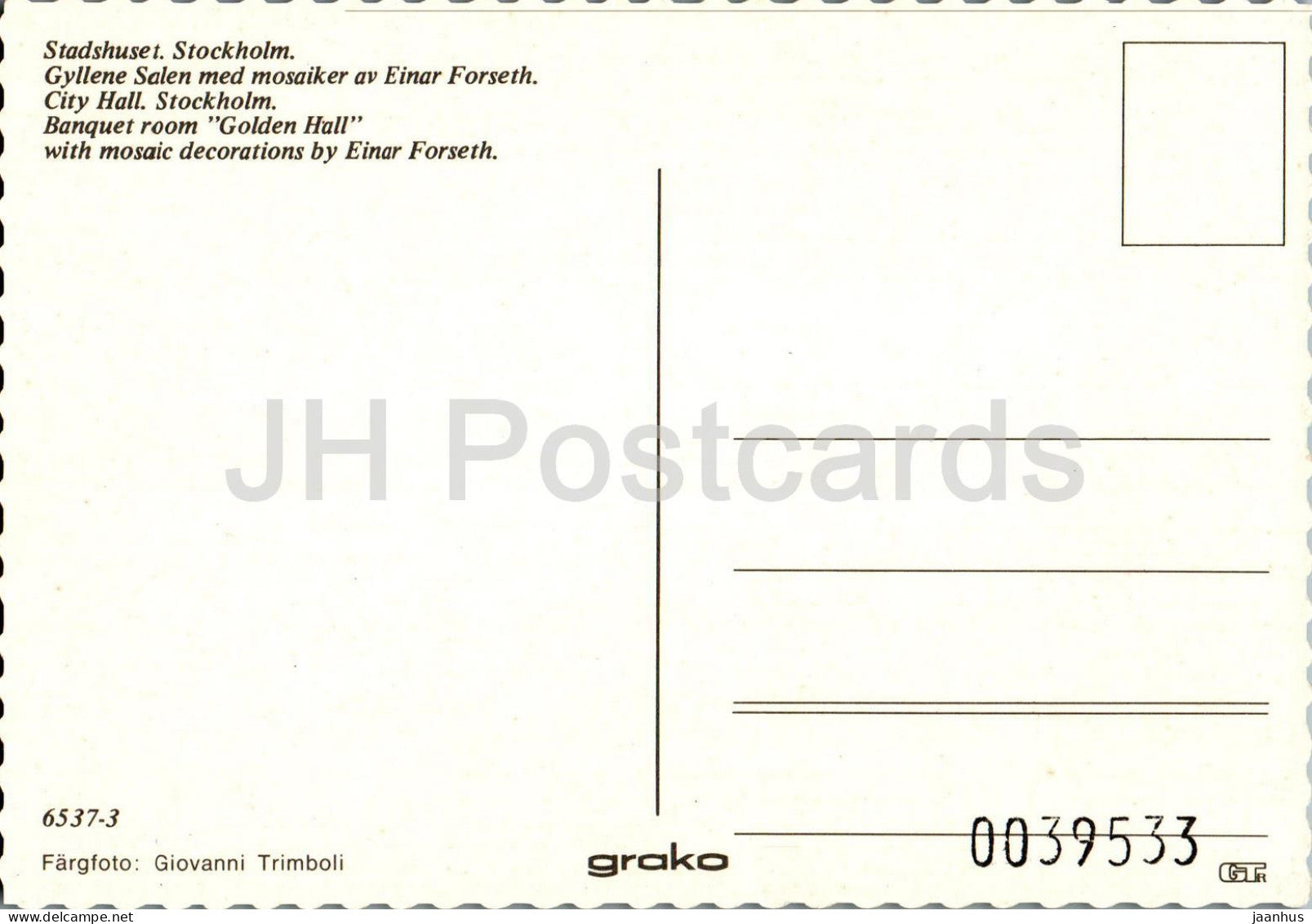 Stockholm - Stadshuset - Gyllene Salen med mosaiker av Einar Forseth - Banquet Room - 6537-3 - Sweden - unused