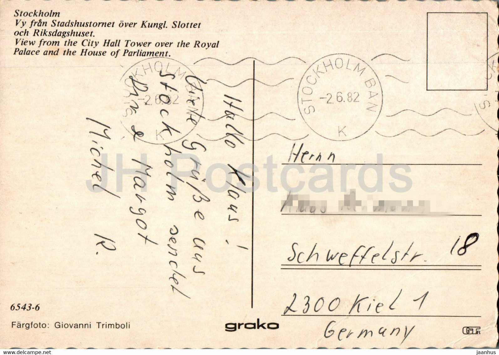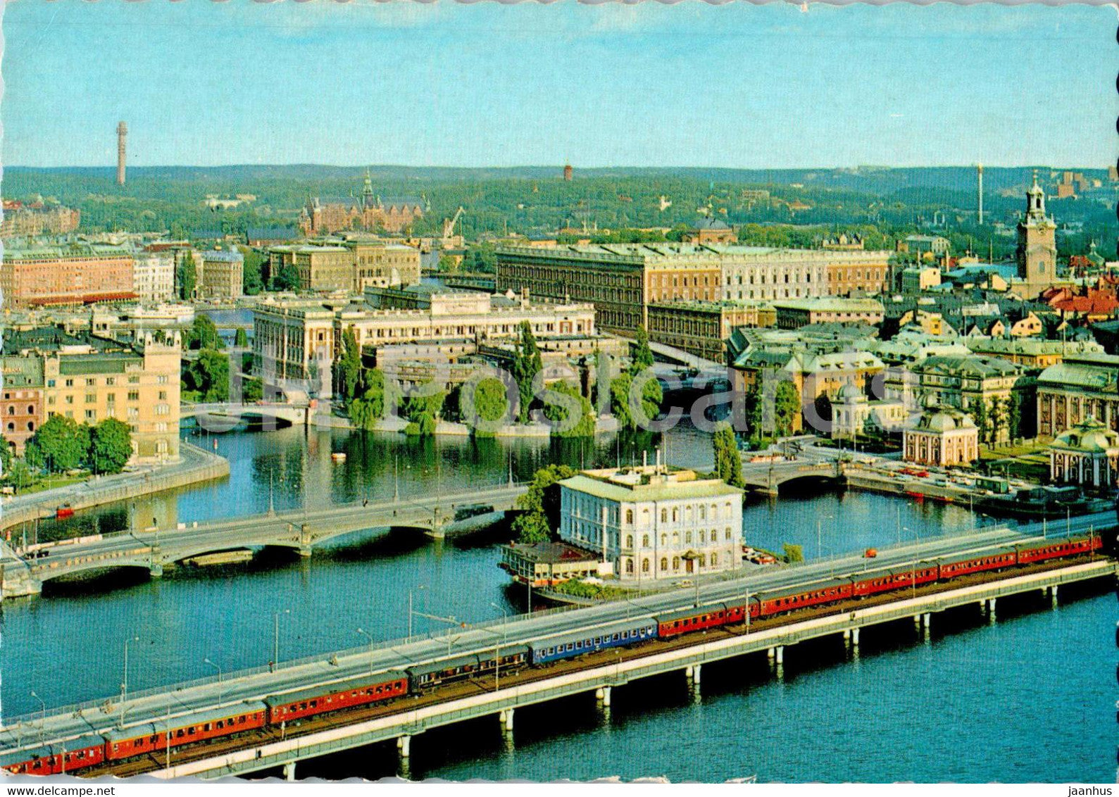 Stockholm - Stadshustornet over Kungl Slottet och Riksdagshuset - bridge - train - railway 1982 - Sweden - used