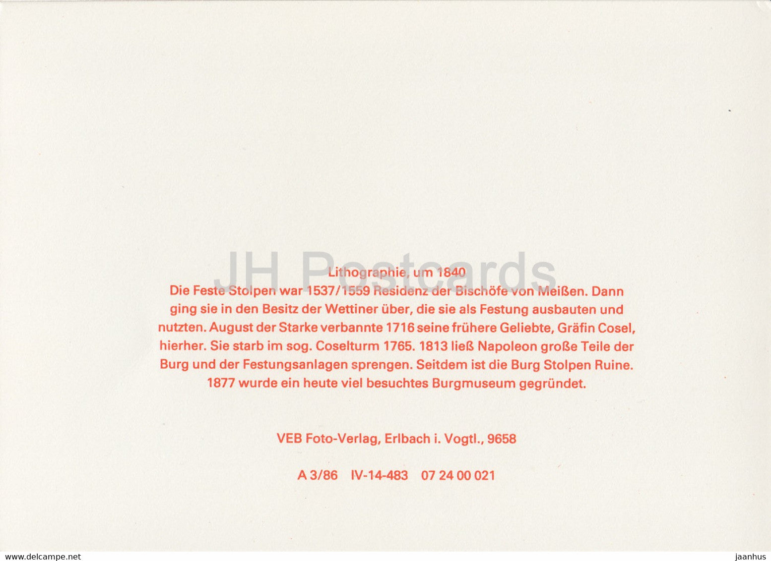 Stolpen - Sachsische Burgen - Saxon Castles - DDR Germany - unused