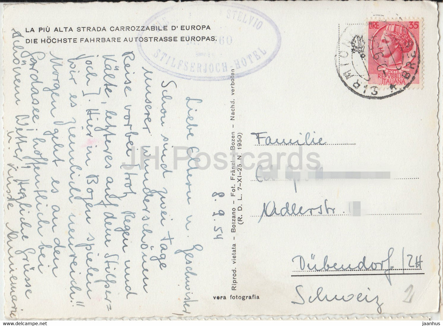Strada dello Stelvio 2760 m - Stilfserjoch Strasse und Umgebung - old postcard - 1954 - Italy - Italia - used