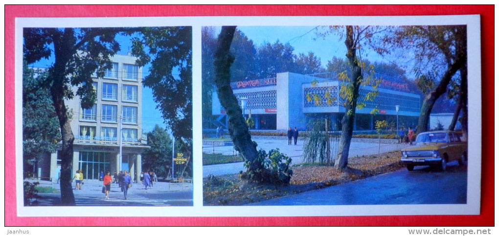 streets , chaikhana Farohat - car Moskvich - Dushanbe - 1974 - Tajikistan USSR - unused