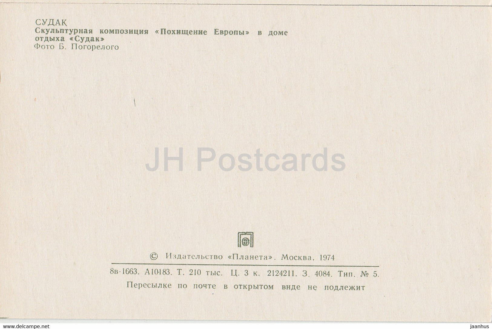 Sudak - sculptural composition The Abduction of Europa in Holiday House - Crimea - 1974 - Ukraine USSR - unused
