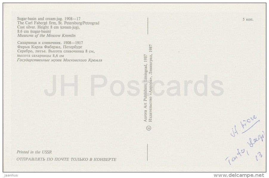 Sugar-Basin and Cream-Jug - silver - The Faberge Jewellery - 1987 - Russia USSR - unused