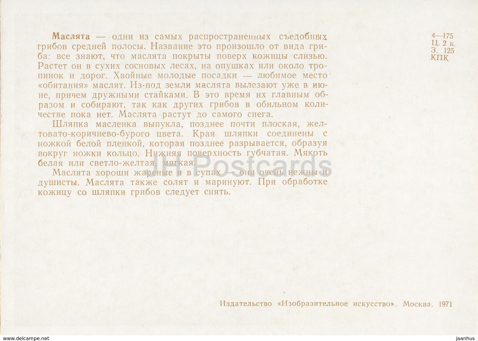 Suillus - mushrooms - illustration - 1971 - Russia USSR - unused