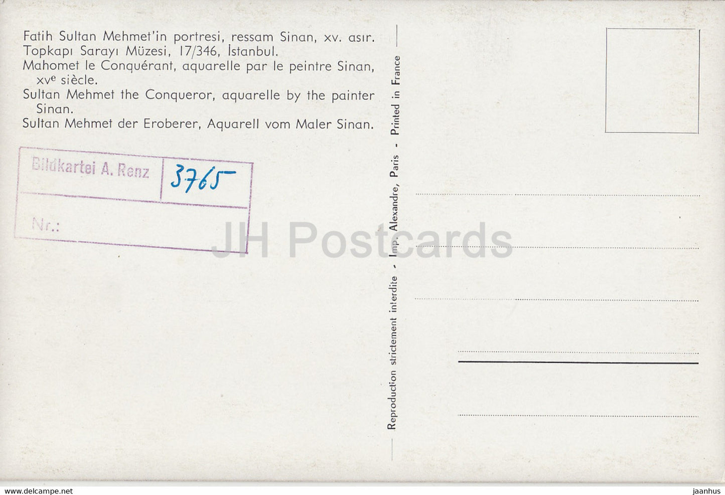 Sultan Mehmet the Conqueror , aquarelle by the painter Sinan - Turkish art - Turkey - unused