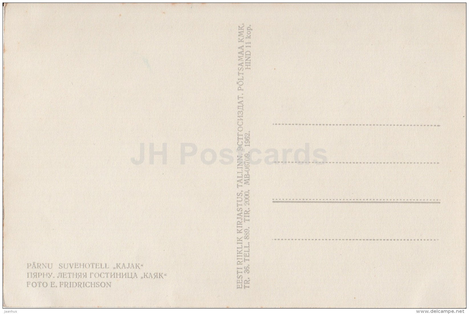 Summer Hotel Kajak (Seagull) - Pärnu - 1962 - Estonia USSR - unused