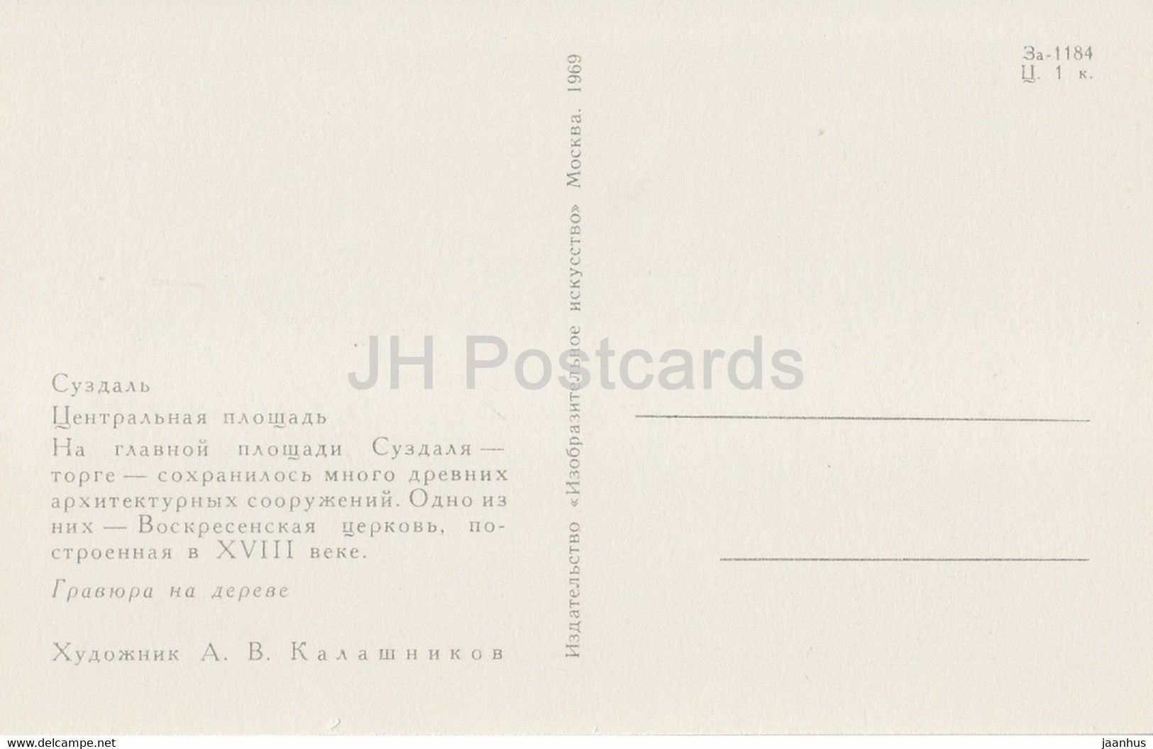 Suzdal - Central Square - illustration by A. Kalashnikov - 1969 - Russia USSR - unused