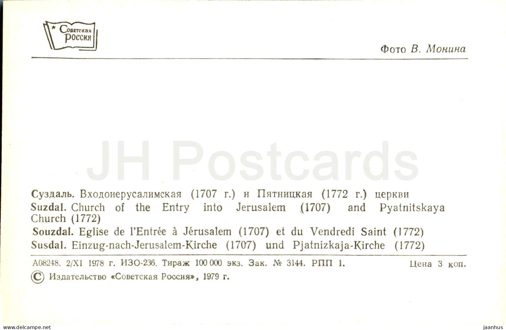 Suzdal - Church of the Entry into Jerusalem and Pyatnitskaya Church - 1979 - Russia USSR - unused