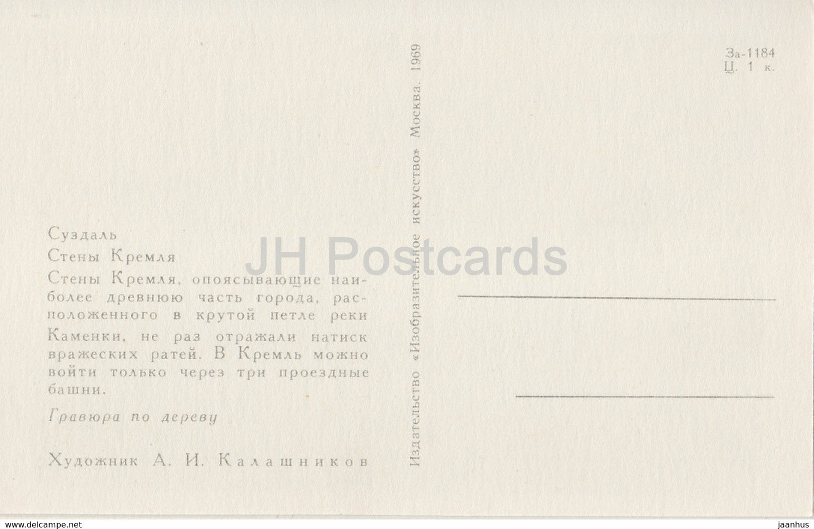 Suzdal - Kremlin Walls - illustration by A. Kalashnikov - 1969 - Russia USSR - unused
