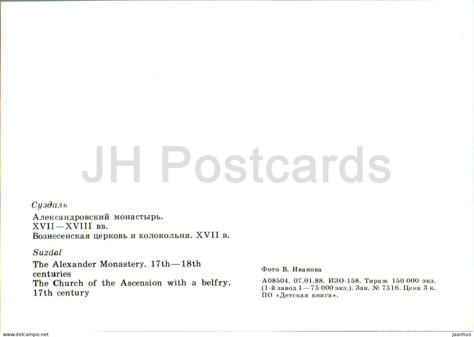 Suzdal - The Alexander Monastery - The Church of the Ascencion with a belfry - 1988 - Russia USSR - unused