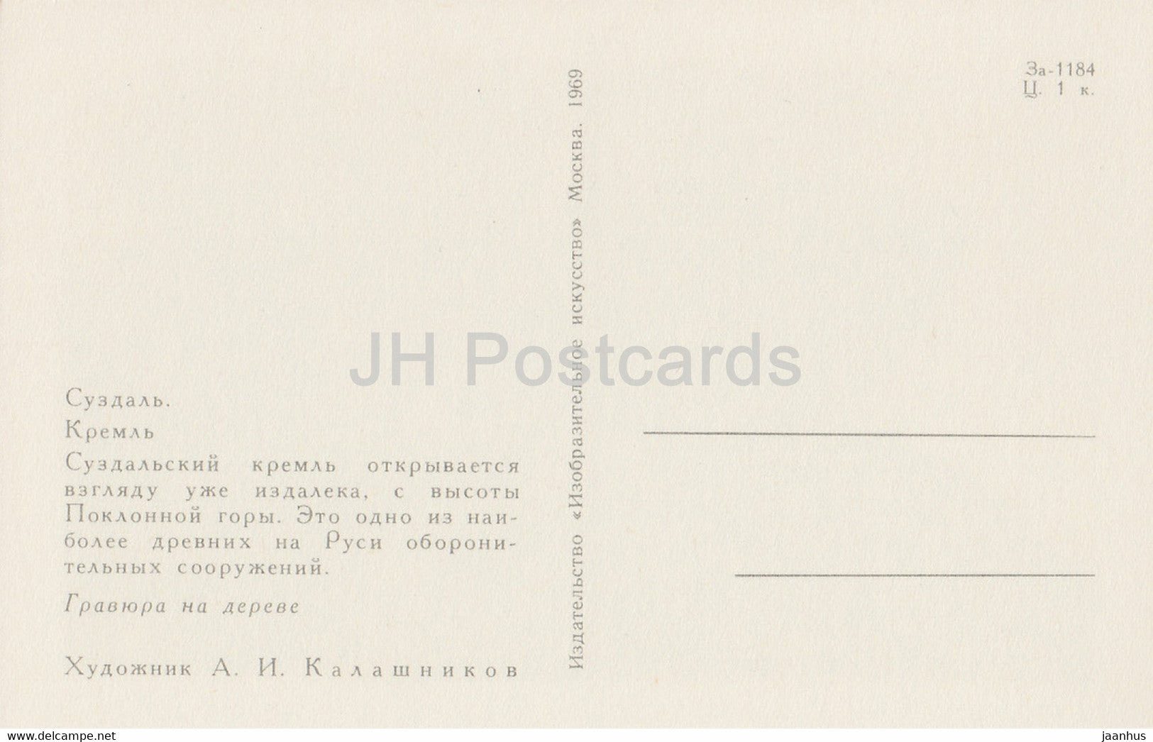 Suzdal - The Kremlin - illustration by A. Kalashnikov - 1969 - Russia USSR - unused