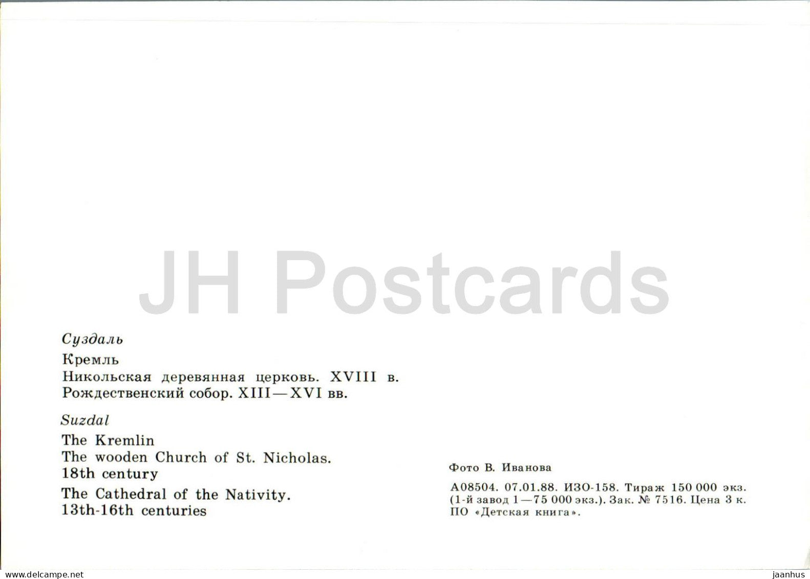 Suzdal - The Kremlin - The Wooden Church of St Nicholas - Cathedral of Nativity - 1988 - Russia USSR - unused