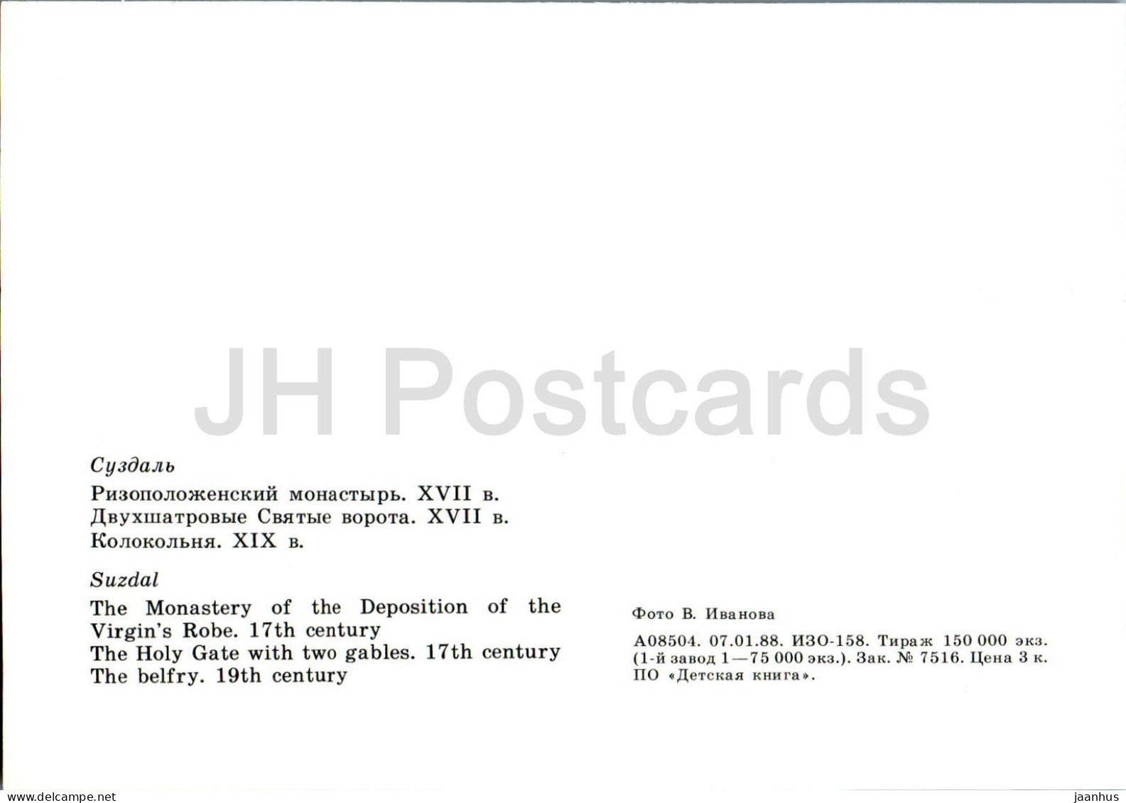 Suzdal - The Monastery of the Deposition of the Virgin's Robe - 1988 - Russia USSR - unused