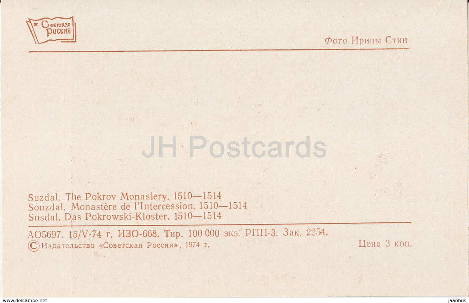 Suzdal - The Pokrov Monastery - 1974 - Russia USSR - unused