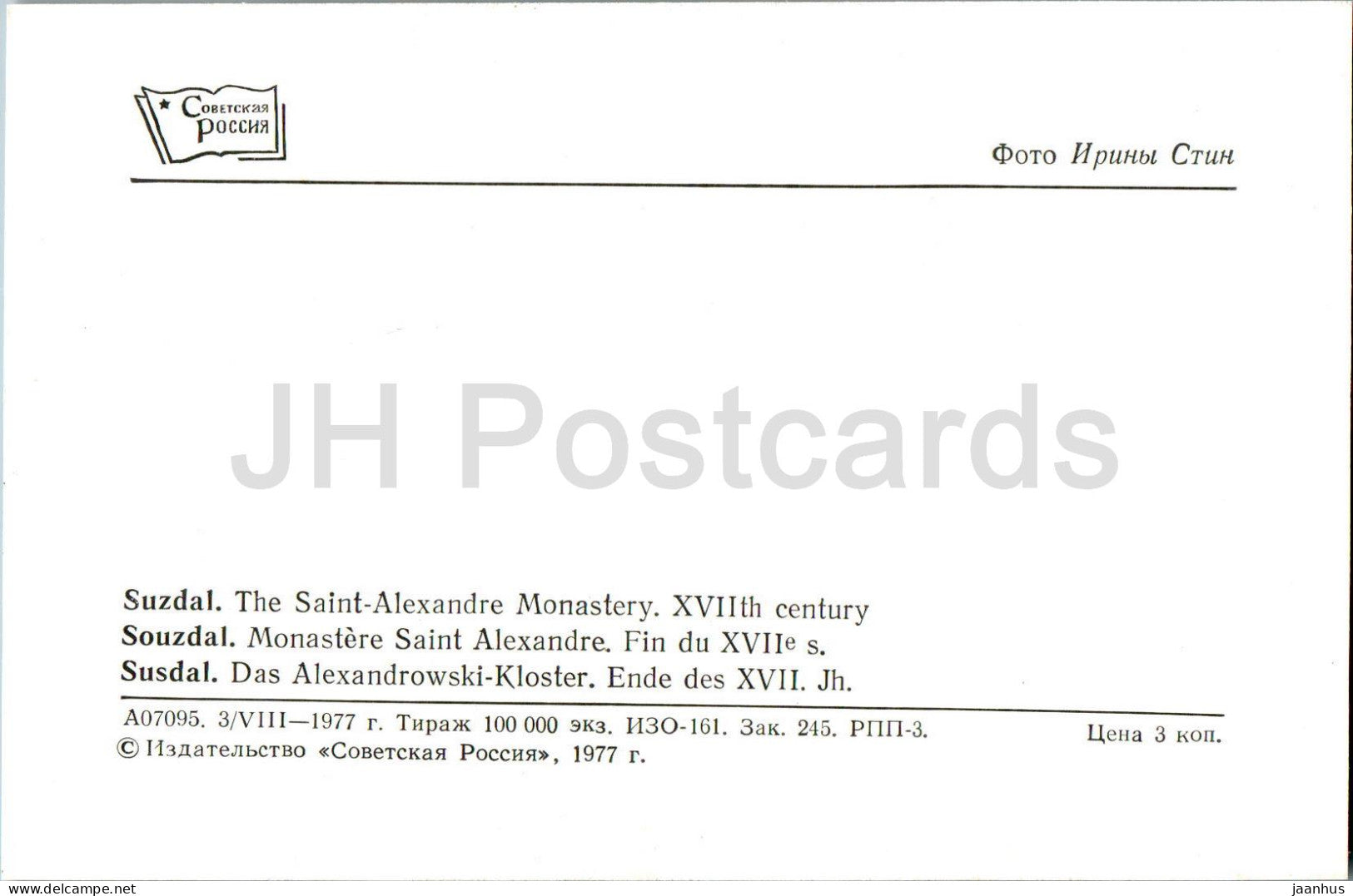 Suzdal - The Saint Alexandre Monastery - 1977 - Russia USSR - unused