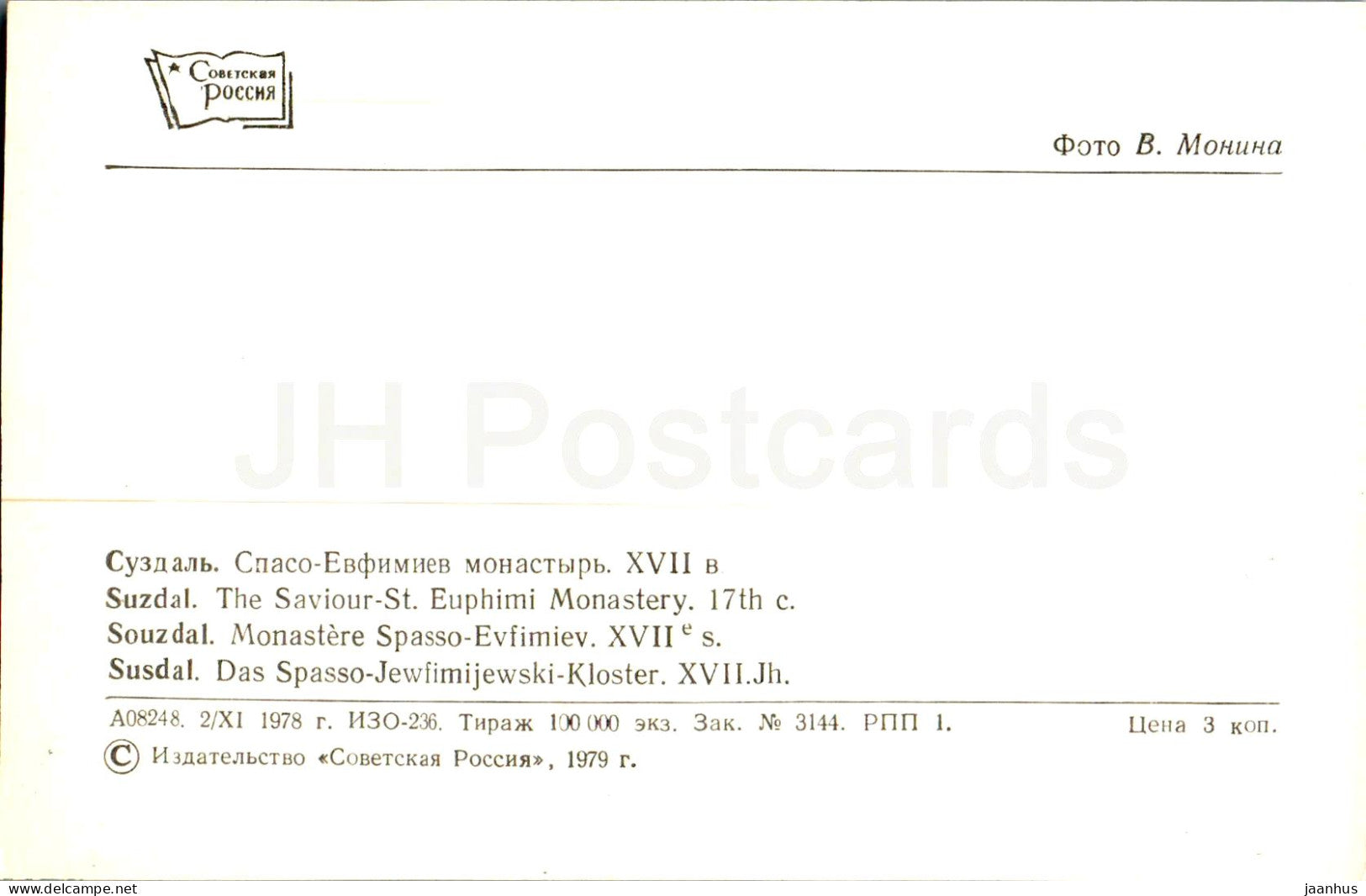 Suzdal - The Saviour St Euphimi Monastery - 1979 - Russia USSR - unused