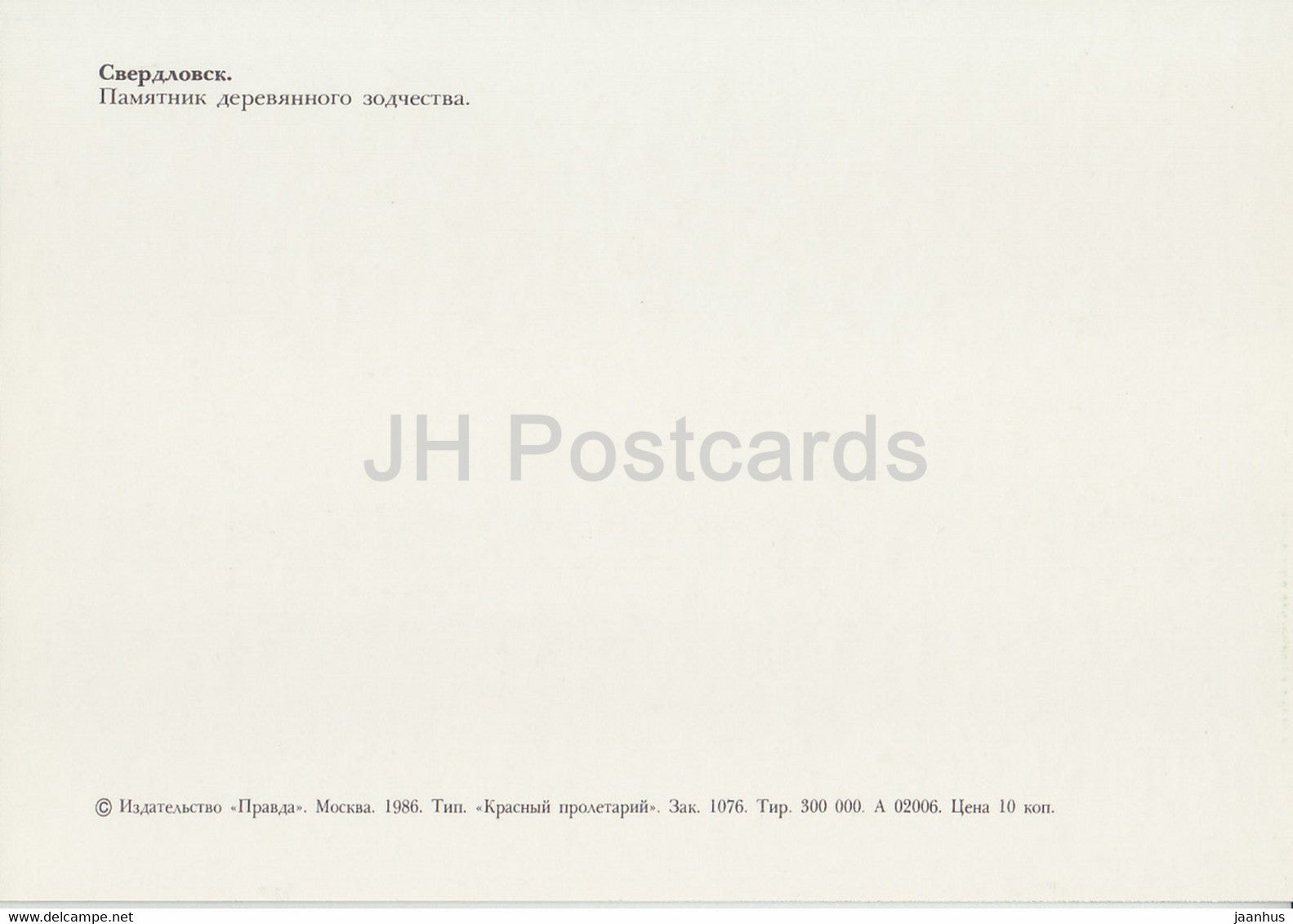 Sverdlovsk - Yekaterinburg - monument of wooden architecture - car Volga - 1986 - Russia USSR - unused