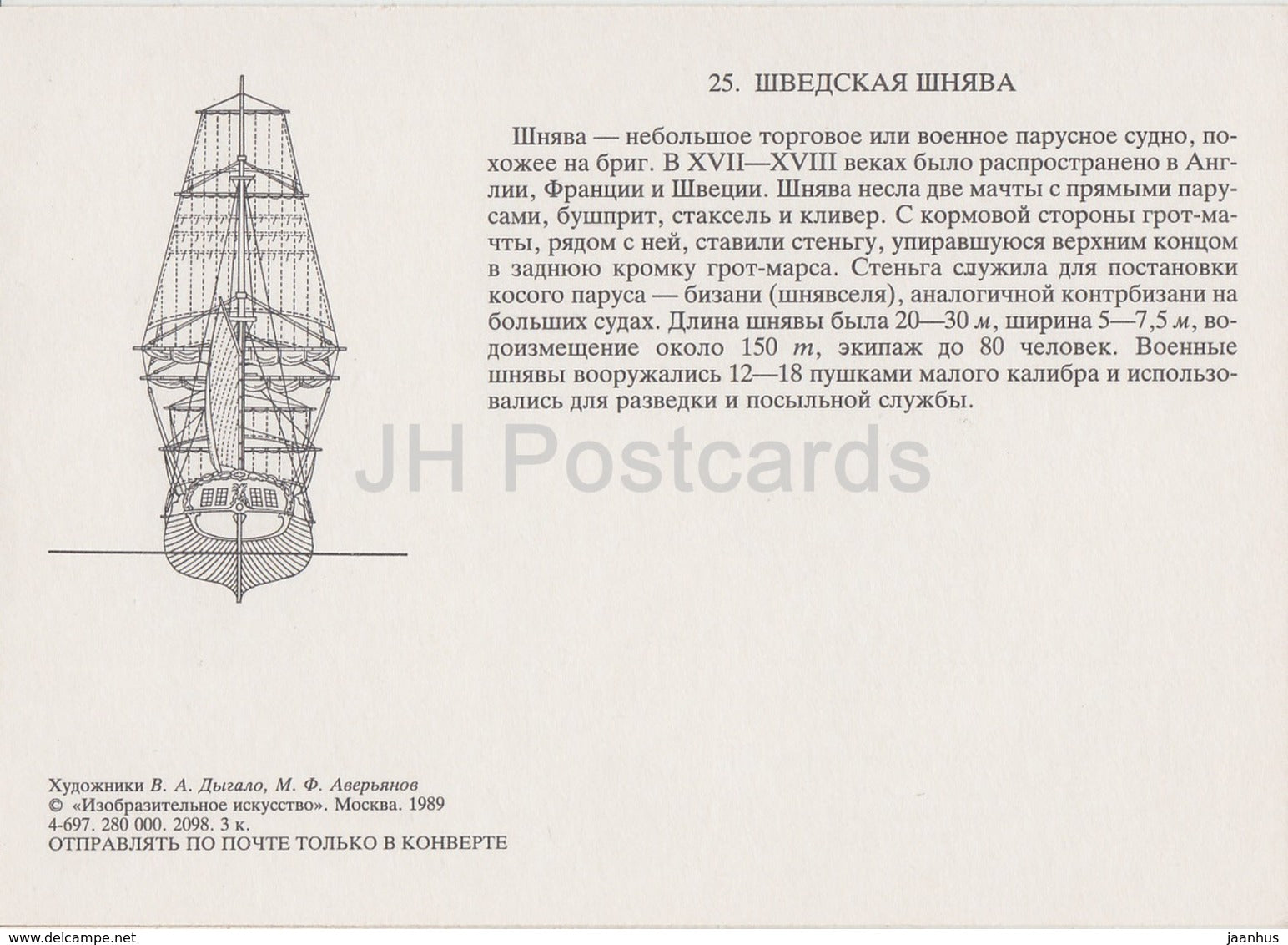 Swedish Snow - sailing ship - illustration - 1989 - Russia USSR - unused