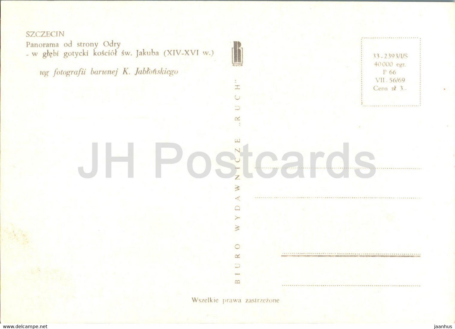 Szczecin - Panorama od strony Odry - Kosciol Sw Jakuba - church - Poland - unused