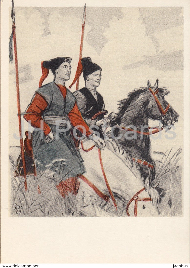 Taras Bulba by N. Gogol - horses - illustration by Shmarinov - 1973 - Russia USSR - unused